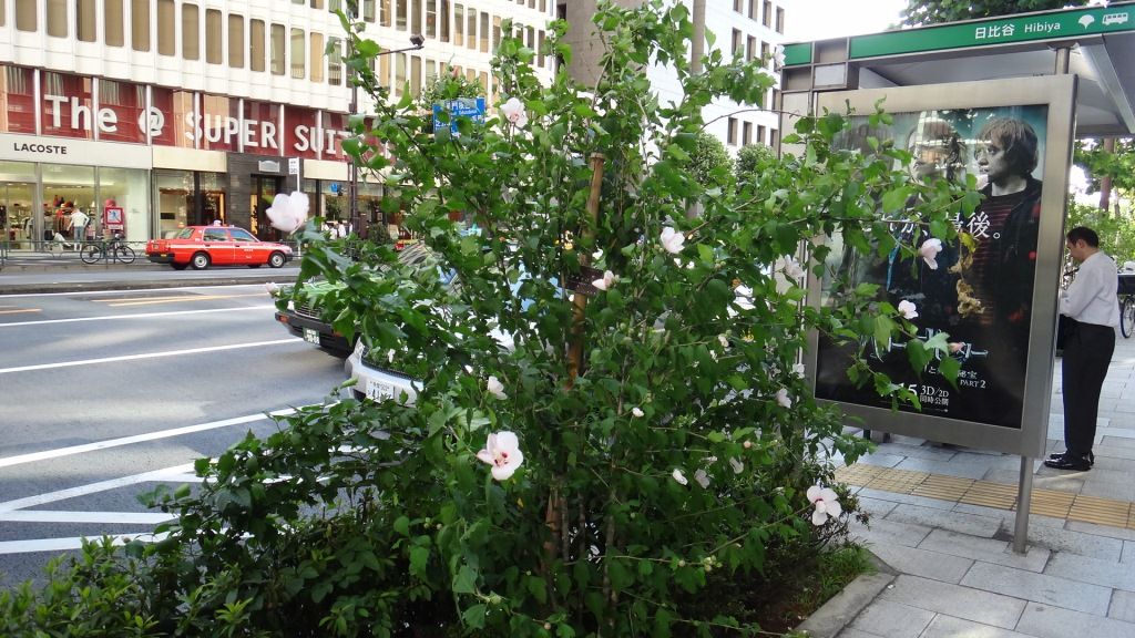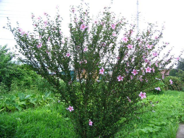 ムクゲは花は長く咲くが、樹液が汚らしくて雑木のように見えるのが傷だ。