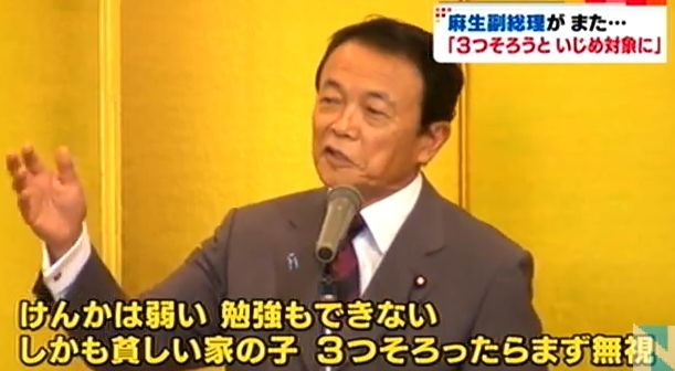 麻生日本副総理「弱く、勉強ができず、貧しいと無視」非難