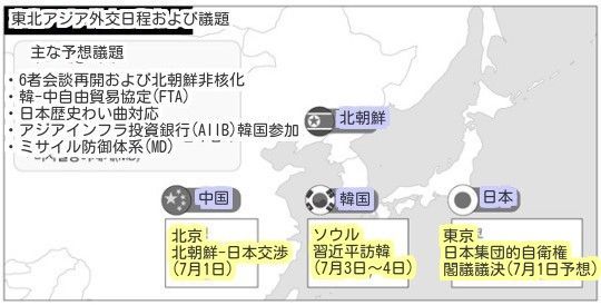 [ハンギョレ]習近平訪韓と外交戦略日本の右傾化・米国MD推進で対立東南アジアとの領有権問題で衝突北朝鮮との交流も疎かになって韓国の外交的価値大きくなって習近平中国国家主席の7月3~4日の訪韓は、韓-中間の友好増進の次元を超えて、中国のアジア周辺国の外交の新しい枠組みという次元で、少なくない意味を持っている。中国の現在のアジアでの状況は、それほど容易ではない。右傾化に突き進む日本とは、類例がないほどの大きな対立を続けている。昨年11月に中国が東シナ海で防空識別圏を宣言し、12月に日本の安倍晋三首相が靖国神社参拝し、二国間の領土や歴史論争に油を注いだ。日本の集団的自衛権の行使も秒読みに入った。北京の外交街では、「中国は、安倍首相の執権期間中は、日本との関係をあきらめたようだ」という言葉まで出ている。東南アジアでは、フィリピンやベトナムとの領有権問題で衝突している。中国の南シナ海での原油掘削作業は、ベトナムでの大規模な反中デモを触発させた。中国の「海洋崛起」に脅威を感じたベトナムとフィリピンは、共同対応の意志を明らかにした。習主席は27日に北京で開かれた「全国変更海岸防御工作会議」の演説で、「領土主権と海洋権益の守護を堅持して変更し、海岸防御の鉄壁を構築せよ」と強硬方針を重ねて明らかにした。中国がアジアの諸国との摩擦が激化した背後には、アジアのリバランス戦略を推進する米国がいると感じている。
