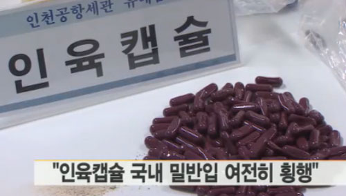 26日、セヌリ党のパク・ミョンジェ議員が関税庁から受けた資料によると、2011年8月から今年7月まで、人肉カプセルを国内に密輸しようとして摘発された件数は117件、摘発された量は6万6149錠にのぼる。人肉カプセルは流産したり死産した胎児の胎盤などを乾燥させた後に挽いて作られるものだが、末期癌や慢性腎不全、重症の糖尿病、皮膚美容、その他難病に効果があるという根拠のない噂が広がって、探す人がいる。人肉カプセルは中国人と朝鮮族が多く居住している地域と、最近中国人観光客が急増した済州島で、1kgにつき25万ウォン、30~50錠で6万~9万ウォンで販売されていることが明らかになった。しかし、食品医薬品安全庁の検査の結果、人肉カプセルは健康に良いという噂とは異なり、人肉カプセル1錠で細菌などの細菌187億匹が検出され、B型肝炎ウイルスまで検出されたことが知られ、論難になっている。人肉カプセル密搬入ニュースに接したネチズンは、「人肉カプセルの密搬入って、細菌を買って食べるのか?」「人肉カプセルを密搬入、あんなものをなぜ食べる?」「人肉カプセル密搬入、体に良いならなんでも食べるのか」などの反応を見せた。