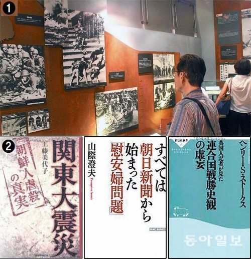 [東亜日報][関東大虐殺91周年/日本社会の右傾化の現住所】安倍の歴史観の反映のため、「ピース大阪」の展示室まで改編する①大阪市のピース大阪の1階の展示室で、観覧客たちが、かつて日本軍が行った中国人虐殺の写真を見ている。ここには、日本軍の侵略の資料が展示されているが、改装工事の後に姿を消す可能性が高い。②日本の加害の歴史を消去することに熱を上げている代表的な書籍。「関東大震災 朝鮮人虐殺の真実」では、「朝鮮人が放火と殺人を犯した」と主張している。「すべては朝日新聞から始まった慰安婦問題」では、慰安婦は売春婦だと強弁している。「英国人記者が見た連合国戦勝史観の虚妄」では、日本人の翻訳者が「南京大虐殺は捏造」と加筆して議論となった。