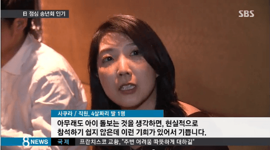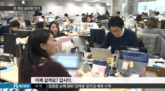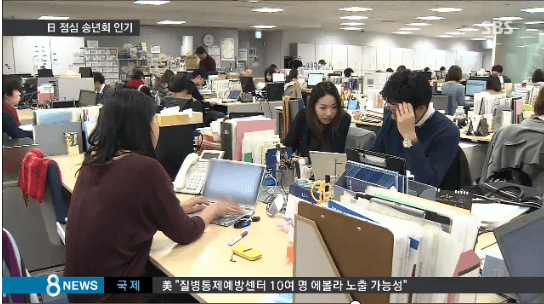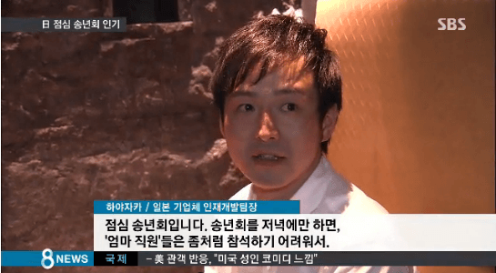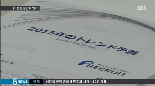 <アンカー>最近、忘年会のために疲れますよね。日本では、部ランチ忘年会が流行しています。これは朝食とランチを合成したブランチではなくて、部署とランチを合成した言葉です。部署忘年会をお昼にしようということです。特に、家事と仕事を両立させている女性会社員に人気です。東京からチェ・ソンホ特派員です。<記者>女性職員が40%を超える日本の企業です。時計が1時を指して、従業員が一斉に立ち上がりました。[もう行きましょうか?行きましょう。]部署の全従業員が向かったのは、他でもないレストラン、部署忘年会の席です。[ハヤサカ/日本企業の人材開発チーム長:ランチ忘年会です。忘年会を夕方にだけすると、「ママ従業員」はなかなか参加しにくいので。]「部署」と「ランチ」を合わせた、いわゆる「部ランチ」の忘年会で、特に子供を育てる母親の社員が大満足しています。[サクラ/従業員、4歳の娘が1人:どうしても子供の世話を考えると、現実的に参加するのは難しいけど、このような機会があってうれしいです。]企業内コミュニケーションが円滑になって、従業員の満足度も高いので、会社側と管理者も歓迎しています。「部ランチ」のインターネット検索は、1年前より1.5倍増加しました。コストが平均で2,600円、ディナーでの飲み会の半分の水準という点も、不況の日本で流行するのに一役買いました。日本リクルート社では、部ランチが増えて、来年は8大流行になると予想しました。