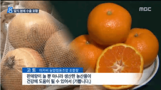 [ニュースデスク]◀アンカー▶福島原発事故後に放射能汚染の懸念のため直撃弾を受けた日本の農産物が史上最高の輸出額を記録しました。どのような理由でしょうか?東京からイ・ドンエ特派員が覗いてみました。◀レポート▶東京銀座の寿司専門店。昼食の時間前なのに長い列ができています。日本の食文化、いわゆる和食が世界文化遺産に選定された後、日本食は外国人にとって不慣れな食べ物ではなくなっています。◀スウェーデンの観光客▶「寿司は有名です。スウェーデンにもあります。」このような関心に加えて、過去3年間持続した円安のおかげで、昨年、日本の農食品輸出が初めて6000億円を超えました。和牛として広く知られている牛肉の輸出が40%以上増えて、メロン、イチゴなどの農産物、お菓子の輸出も30%以上増加しました。日本政府は、農産物の輸出をさらに引き上げるため、農産物の価値を高める新たな制度も導入しました。野菜や果物に含まれている成分を活用して、血がきれいになるタマネギ、骨が丈夫になるみかんなど、まるで健康補助食品のように広報することができるようにするというのです。◀ゴトウ組合長/みかん農業協同組合▶「販売量が増えて、また、生産された農産物が健康に役立つことができて(うれしい)」日本政府は農産物の輸出規模を5年以内に二倍に増やすという目標で、オーストラリア、欧州連合などの外国の農産物の輸入規制も一つ二つ解いていっています。東京からMBCニュースのイ・ドンエでした。引用ソースhttp://news.naver.com/main/read.nhn?mode=LSD&mid=shm&sid1=104&oid=214&aid=0000472868