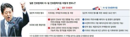 [ハンギョレ]日本連立与党「安保法制」大枠合意18日、日本の連立与党である自民党と公明党が、「安全保障の法的整備に関する与党協議」(以下、与党協議)を開いて合意文書を採択したという事実は、安倍政権になって2年以上続いてきた集団的自衛権の行使をはじめとする安全保障法制の整備に関連する議論がほとんど仕上がったことを意味する。日本政府はこのような合意内容に基づいて、4月末に、有事の際、米軍と自衛隊の役割分担内容を決めた米-日安保協力指針(ガイドライン)の改正案を確定することになる。4月末に確定される米-日安保協力指針の特徴は大きく2つのことを挙げることができる。最初は米-日同盟の活動地域が既存の「日本周辺」という地域的限界を超えて、まさに全世界に拡大されるという点である。この日の合意文には、この内容が明確に表現されていなかったが、日米両国政府は、昨年10月3日に発表した「米-日防衛協力指針の改正に関する中間報告」で、「(米-日)同盟は、アジア・太平洋と『これを超える地域』の肯定的な貢献を続ける国際的な協力の基盤」「日米両国の戦略的目標と利益は完全に一致しており、アジア・太平洋と『それを超えて地域の利益になること』と釘をさしている。これ比べて1997年9月に作成された現行のガイドラインにあ、米-日同盟について「東アジア地域にプラスの影響を与える」程度の言及にとどまっている。東アジアに限定した活動地域を拡大派遣制約事項も大幅に緩和集団的自衛権のために新しい要件を明記「日米安保指針」改定時に反映するもよう第二の特徴は、日本が米国の武力行使を「後方支援」する過程で、これまで自分自身に課してきた制約を果敢に脱ぎ捨てたという点である。日本は昨年7月に閣議決定を介して米国を後方支援する空間的な背景を、現在の「公海など(これまで)戦闘行為が起こらず、活動期間中に戦闘行為が行われないものと認められるところ」から「現在戦闘行為が行われていない場所」に緩和したのに続き、今回の与党協議を通じて、これまで禁止されてきた弾薬などを米軍に供給できるよう議論を進めている。これと共に、現在は禁止されている「現在発進待機中の戦闘機の給油」も可能の方向に傾いている。このような積極的な姿は、日本が将来、自衛隊が「米国の武力行使と一体化することができる」という国内外の懸念にこれ以上は気を使わないという態度を定めたという意味だと解釈することができる。このような方向に日本の安全保障法制が改正された後、米-日同盟は、地域同盟で全世界を舞台にサポートを与えたり受け取ったりするグローバルアライアンスに位相が上がっていくことになる。米-日の指揮体系も、今より一体化されている。韓国とは異なり、独自の作戦権を行使する日本は、米-日がそれぞれ独自の指揮体系を維持している。これと関連して「朝日新聞」は18日、「今後は防衛省地下中央指揮所に米軍幹部がいる方向に(米-日が)調整中だ」とし、「中央指揮所は事実上、自衛隊の最高司令部に該当するため、同様の事態や災害が発生したときに、両国間の連携が強くなることになる」と報道した。集団的自衛権については、昨年7月に閣議決定するとき、日本政府が作成した武力行使のための「新しい3要件」の内容を、米-日防衛協力指針の中に明記する予定である。しかし日本の事情を考慮して、「集団的自衛権」という言葉は使用しない可能性が高いと、日本のマスコミが伝えた。米-日の防衛協力指針は、冷戦時代末期の1979年に初めて作られた後、1993年に始まった第1次北朝鮮核危機などの安保環境の変化を反映して、1997年に第一次改正が行われたことがある。今回の第2次改訂は、「米国の衰退と中国の浮上」という巨大な力の力学の変化を反映して、自衛隊が全世界を背景に、米国をもっと積極的に後方支援することを可能にする内容が骨組みとなっている。引用ソースhttp://news.naver.com/main/ranking/read.nhn?mid=etc&sid1=111&rankingType=popular_day&oid=028&aid=0002267629&date=20150318&type=1&rankingSectionId=104&rankingSeq=5