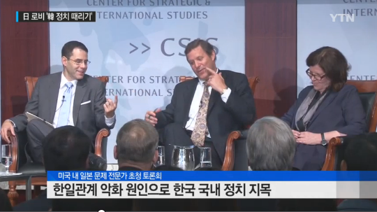 日本のロビー戦略は「韓国国内政治」叩き[アンカー]最近ワシントンで開かれたセミナーで、米国の日本問題専門家が出てきて、韓日関係を評価する討論会を開きました。かれらは予想通り、韓日関係の悪化の原因を韓国国内政治とするなど、日本が米国の学者たちにどのようなロビーをしているか間接的に見えました。【韓国の反応】「ワシントンを握る恐るべき日本の『ステルスロビー』」と韓国メディア