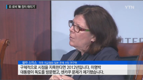 [シーラ博士]「具体的な視点を挙げれば、2012年が問題でした。李明博大統領が独島を訪問して、尖閣問題も出ました。」