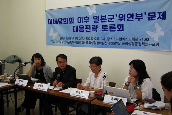 「韓国政府、韓半島を軽蔑した『安倍談話』に降伏」挺対協、安倍談話以来、「慰安婦」問題への対応戦略討論会を開催チョ・ジョンフン記者「事態への明確な理解に立脚した戦略的な考慮をせず、無理やり背水の陣を敷いたが、全面的に降伏した形である。」キム・チャンロク慶北大学校法学部教授は20日午後、ソウル貞洞フランシスコ会館で、「韓国挺身隊問題対策協議会」(挺対協、常任代表ユン・ミヒャン)と国会生活政治実践議員の会などが共同主催した「安倍談話以後の日本軍『慰安婦』問題への対応戦略討論会」で、このように指摘した。▲キム・チャンロク慶北大学教授。キム・チャンロク教授は去る14日に発表された戦後70年「安倍談話」が、韓半島侵略について言及していないにも関わらず、パク・クネ大統領と外交部が出て「歴代内閣の立場は今後も揺れない」というくだりだけ評価したことを指摘した。キム教授は「(安倍談話は)朝鮮半島の植民地支配への責任は言うまでもなく、そもそも『日本の植民地支配』への反省と謝罪とは無関係な談話だ」とし、特に「日露戦争」への言及について「朝鮮半島の植民地支配の責任を否定するという挑発だ」と評価した。安倍談話は、過去の歴代内閣の談話とは異なり、植民地支配の当事者である日本という主語がなく、第二次世界大戦に言及しつつも、「平和と繁栄のために尽力してきた」と明らかにした。また、「日露戦争」について、「植民地下にあった多くのアジア、アフリカの人々に勇気を与えた」と明示した。そして、第二次世界大戦当時、日本の敵国だったアメリカ、オーストラリア、ヨーロッパ諸国などに対して、「断腸の思い」で謝罪し、「善意と支援の手」と言いつつ、戦後の復興に感謝を示した。しかし、韓半島侵略への言及がないという点で、キム教授は「安倍は、日本の韓半島植民地支配は、そもそも問題ではないという考えだ。日本の行為に対する反省と謝罪をしたくないという思いが込められている」と指摘した。そして「強い相手、米国などに対しては強く感謝した方が良いという思いが反映された」とし「非常に難渋で脈絡が通じない表現と文章で、度重なる誤魔化しをして、水で薄めた談話」と評価した。また、日本軍「慰安婦」問題について「日本という主体が抜けているだけでなく、その女性がいったい誰なのかが明確ではなく、反省と謝罪はそもそも登場もしなかった」とし「この部分が『慰安婦』被害者たちへの認定と反省と謝罪と関連があると到底見るのは難しい」と指摘した。それとともに、これについて韓国政府が「日本軍『慰安婦』問題の解決なくして首脳会談はない」と公言してきたのに、今回の談話に物足りなさを表しつつも「歴代内閣の立場は揺れない」というくだりだけに注目した反応を出したことについて「背水の陣を敷いたが、全面降伏した局面」と批判した。これに反して中国外交部が「軍国主義侵略戦争に対して真の謝罪をしろ」と発表した論評についてキム教授は、「言うべきことは言った」と評価した。ただし安倍政府は「中国は国際秩序に対する挑戦をしている」という認識を持っており、談話でも「自由、民主主義、人権という基本的価値観を揺れないものとして堅持し、その価値を共有する国々と手を取り合って貢献したい」とした部分は、中国を迂回的に批判したと分析した。キム教授は「米国としては充分な内容を得て、中国としては体面を守ったが、韓国は徹底的に軽蔑された」とし「その背景には、冷酷な国際政治の現実が位置しているが、韓国の無力さが一役買った」と指摘した。それとともに「韓国政府が体面を回復するためには、日本軍『慰安婦』問題を解決することであるが、安倍談話に照らしてみると、日本政府が自ら解決する道はないので、市民社会が問題解決のための確固とした立場を堅持するしかない」と強調した。▲韓国挺身隊問題対策協議会と国会生活政治実践議員の会などは20日午後、ソウル貞洞フランシスコ教育会館で「安倍談話以後の日本軍『慰安婦』問題への対応戦略討論会」を開催した。この日の討論会に出席したナム・サング北東アジア歴史財団研究委員は、「韓国の蔑視といったが、さらに加えると、日本の反撃だ」とし「安倍談話は1930年代までは、日本の行為に問題がなかったという認識だ。既存の談話が1910年以降の日本の植民地支配を反省しているとするなら、安倍談話では、この時は何の問題もなかったようだ」と話した。そして「安倍談話によると、1931年の中国大陸侵略、1941年太平洋戦争は間違った行為だが、1910年の朝鮮の植民地支配は誤った行為ではないということ」「国際社会がこの談話を受け入れることができる内容を満たしたものである。しかし韓国政府としては、対応するのが難しくなった。こういうことを念頭に置いたものとみる」と評価した。「安倍談話以後は、過去の歴史清算運動が難しくなるもよう…全方位での外交