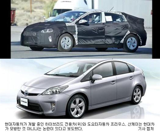 現代自動車のハイブリッド専用モデルカーAE(開発コード名)が、トヨタ自動車のプリウスを模倣したという疑惑が提起されました。