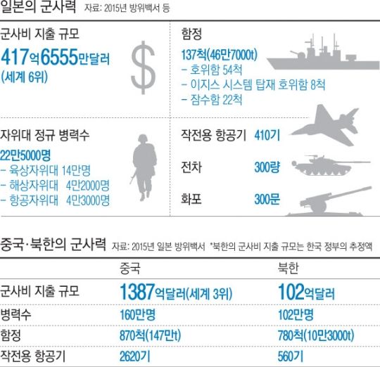 [日本、安全保障法通過]日本、軍事費の支出で世界6位…戦力、中国と対等