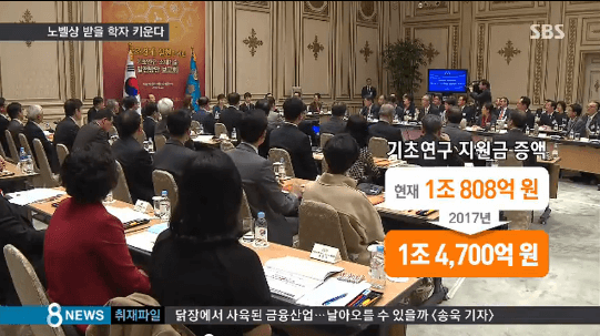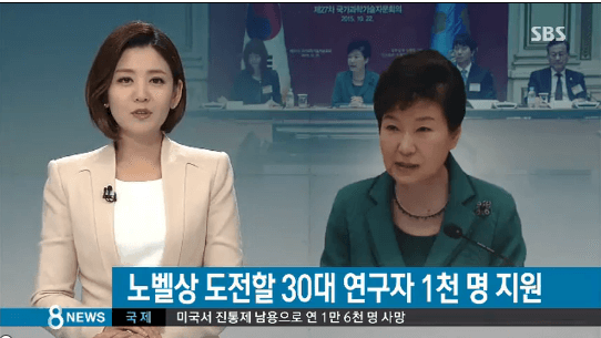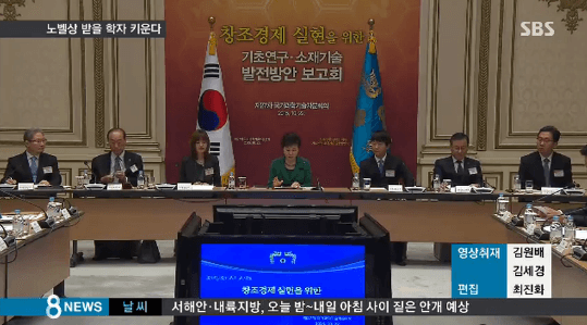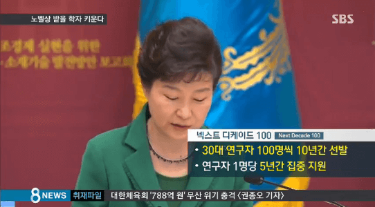 [パククネ大統領:今後ノーベル賞に挑戦する世界トップクラスの研究者を養成し、世界レベルの優秀性を確保するための官民合同の戦略的サポートを強化する必要があります。]