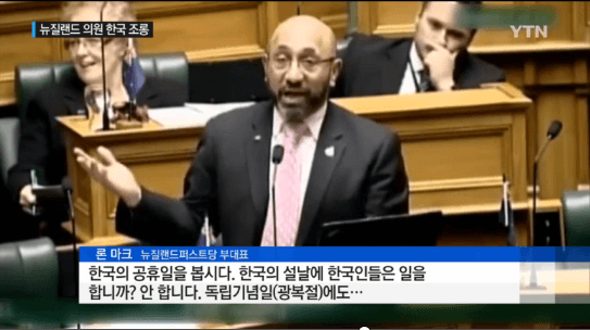 ニュージーランドの国会議事堂で、突然韓国の祝日が登場して舌戦が繰り広げられました。