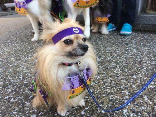 11日、日本の犬用品販売店が披露した「ワン号機甲冑」は、紫と緑を組み合わせたカラフルな配色で、自動車、バイク等運転手の目につくようにして、事故を未然に防止しようとする目的があるという。