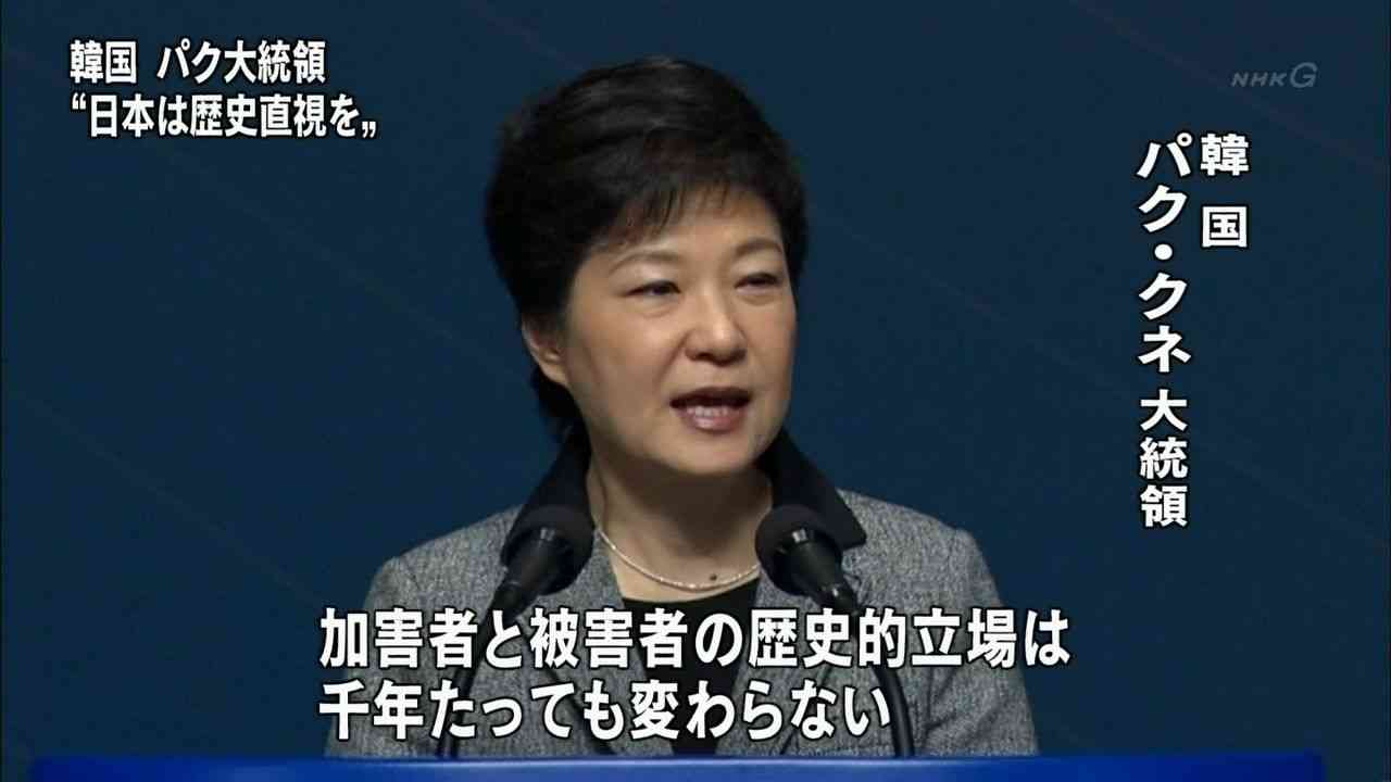 パククネ政権は事実上、反日(ユン・ビョンセ:「外交順位は、米-中-日」)を標榜して発足したし、その後の大統領の「千年経っても~」発言と、歴訪時の日本非難( 「告げ口外交」)、「慰安婦像の拡散」などに表出される韓国の各種反日の歩みは、歴代政権の中で最高水準を続けていた。