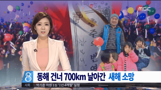 新年初日、忠清北道忠州で願いを書いて飛ばした風船が、700km離れた日本で発見されました。