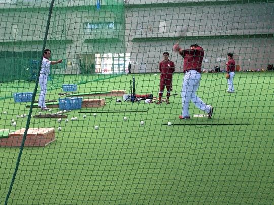 そんな話を思い出しつつ、楽天イーグルスのキャンプ地、久米島グランドの室内練習場を覗いたら、池山隆寛打撃コーチが、新外国人選手のジャフェット…アマダー(Japhet Isidro Amador)とマンツーマンで打撃指導をしていた。池山コーチがボールをトスし、それをアマダーがネットめがけて打ち返す。興味深かったのは、2人のやりとりだった。アマダーが強振すると、池山コーチが言った。「もっと軽くでいいから」。通訳を介してアマダーが頷き、軽いスイングで、しかしそのぶんシャープなスイングをしてボールを捉える。池山コーチは「惜しい」と叫ぶ。そしてこう続けた。「いいか、今は練習の時期だ。強いあたりより、どれだけ正確にボールの下をきっちり叩けるかに集中しなさい」。ボールの下を捉えられれば、打球は自ずと浮上する。外国人打者のパワーがあれば、強振せずともスタンドに運べる。だが強振しようとすると、かえって力んで的確にボールの下を捉えることができなくなってしまう。