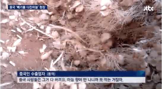 【中国人輸出業者(通訳):韓国からの注文は、すべてあのニンニクだ。我々は輸出入の会社で、許可をすべて受けたのに、(正常なニンニクを)(中国)国内にしか流通させられないので気に障ります。]
