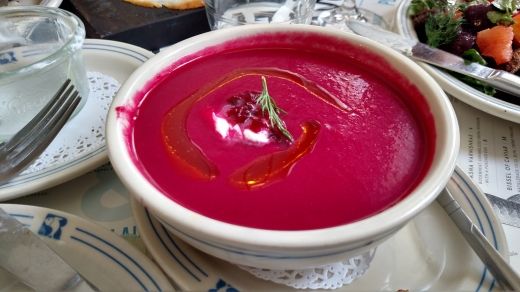 鮮やかな赤や紫がかった野菜や根野菜を主原料とした煮込みスープだ。ビタミンや食物繊維が豊富で、マグネシウム、カリウムも含まれている。