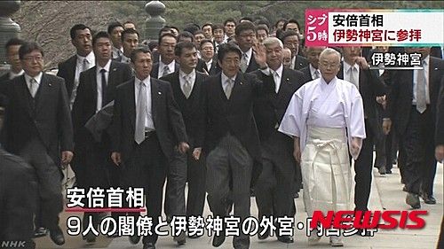 安倍首相は2014年に伊勢神宮の伝統的な儀式の式年遷宮イベントに、現職首相としては84年ぶりに出席した。