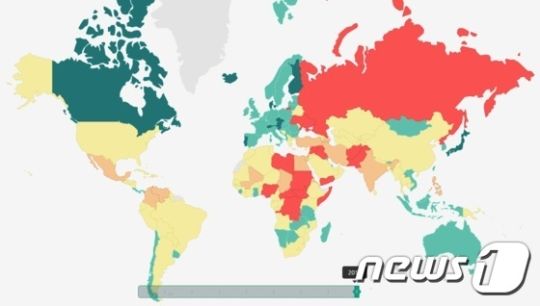 韓国、世界の平和レベルで11階段下落した53位…北は150位