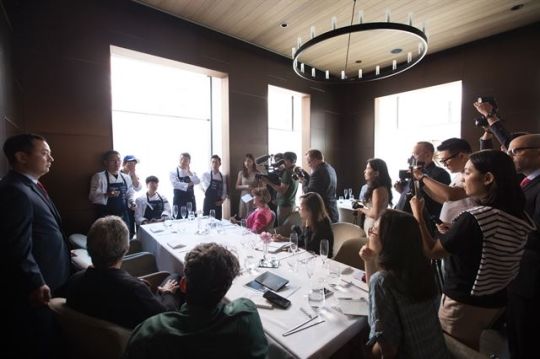 9日、ニューヨークで開かれた記者コリアNYCディナー懇談会には、ニューヨーク・タイムズ、NBC、CNNなどの主要メディアとマットロードバードなどの多国籍なコラムニストたち、シェフの必読書として挙げられる「フレーバーバイブル(Flavor Bible)」の著者カレン・ページ(Karen Page)などが招待された。