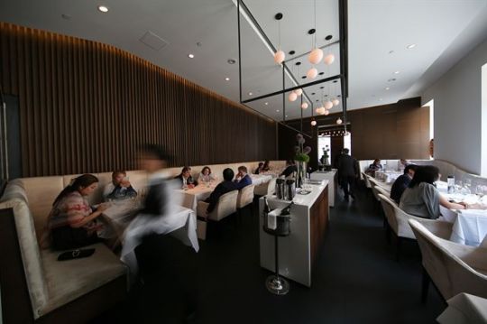 ミシュランガイドの星二つに輝くここのテーブルに最初の皿が置かれると、あちこちで会話のデシベルが上がった。
