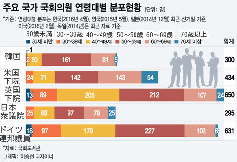 韓国の国会の高齢化現象は、米国、英国、ドイツ、日本などの先進国と比較すると、よりはっきりしている。