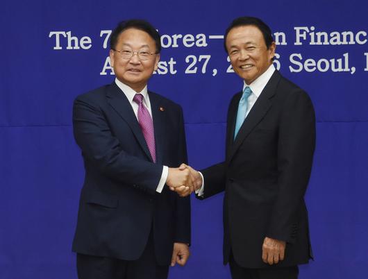 ユ・イルホ副首相兼企画財政部長官と、麻生太郎日本副首相兼財務相は27日、政府ソウル庁舎で韓日財務長官会議を開き、昨年2月を最後に中断した二国間通貨スワップ契約を再締結することにすることで合意した。