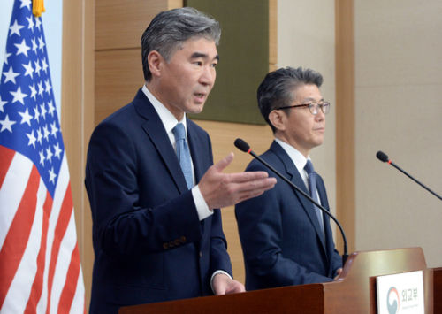 訪韓中の6カ国協議で、米国首席代表のソン・キム国務省対北朝鮮政策特別代表は13日、米6カ国協議首席代表会合後の共同記者会見で、韓国の核武装論と戦術核再配置論についての質問を受けて、「韓米同盟は世界で最も強力な同盟のひとつ」とし「(韓米同盟は)北朝鮮が提起する様々な脅威に対応できる十分な能力を持っている。これには拡張抑止力も含まれている」と明らかにした。