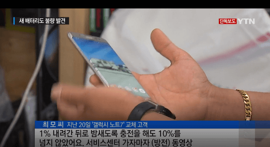 [チェ某氏/ 20日(一昨日)「ギャラクシーノート7」の交換利用者:1%になって一晩中充電をしたのに10%を超えませんでした。サービスセンターに行ってすぐに(放電の)動画を見せて、(充電に)挿したサービスセンターもすぐに充電ジャックを抜きました。爆発するかと思って抜いたのでしょう。]