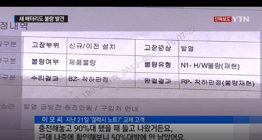 [イ某さん/ 21日(昨日)に「ギャラクシーノート7」新製品に交換:充電して90%台になったので持って外出したんです。後で確認してみると50%しか残ってませんでした。しかもあまりにも熱かったです。怖くなって使えませんでした。]
