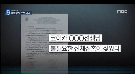 韓国語講師のコイカボランティアのイ某氏が「現地の女教師たちに不必要な身体接触をたくさんした」と書かれています。