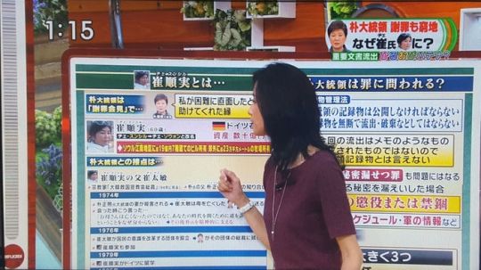 「私人のチェ・スンシル氏が、政府内の側近にすら胸襟をひらかないといわれる朴氏の腹心となりえたのは、朴氏の壮絶な人生に寄り添ったからだといわれる。」 「与党から離党を求める声も上がり、1年4ヶ月の任期を残して急速なレームダック化が進みそうだ。」