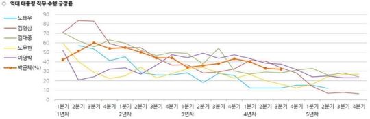朴大統領の場合、第3四半期(7~9月)32%が最後の数値です。