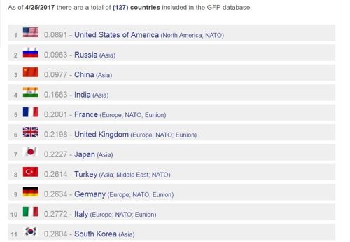 ・↑そもそも純粋な軍事力では韓国が6位である。