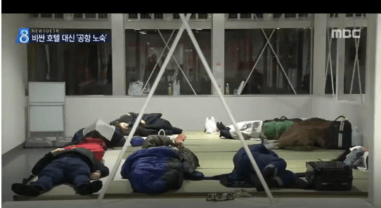 ここ成田空港だけで一日平均200人以上の観光客が宿泊難を解決していると集計されました。