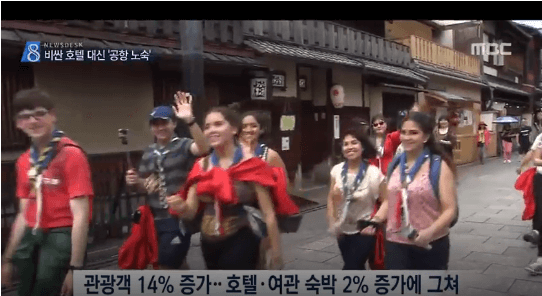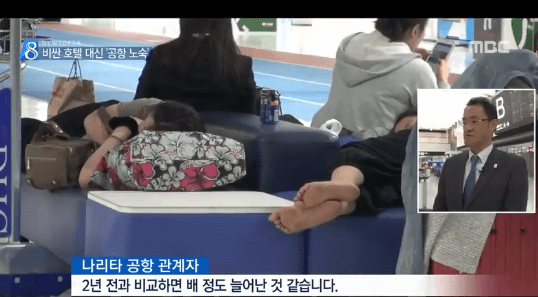 観光客の急増で東京都心のホテルの価格が上がったうえ、低コスト航空会社の発着が早朝の時間帯に集中し、空港での野宿客はますます増えている傾向にあります。