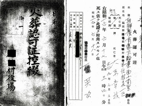 端島、いわゆる軍艦島で亡くなった彼らの火葬許可証明です。