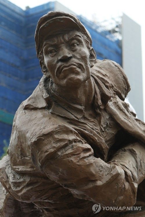 手榴弾を握り締めた像が、ソウル駅広場に置かれたかと思うと、ついに銃を抜きながら疾走する像がこのようにして登場した。