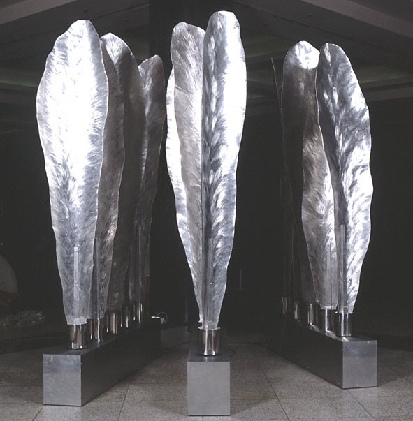 人体の平均温度の36.5度の傾きで設置したこの作品は、「恥が与える画一性、傾きが与える二重性の緊張感」で、この時代の人間像を表現したものである。