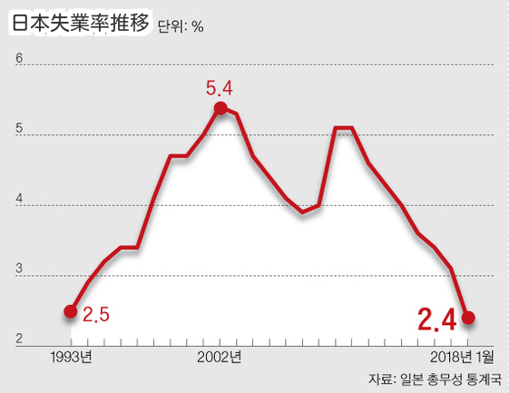 去る1月、日本の失業率も2.4%を記録し、1993年4月(2.3%)以来の低水準まで下落した。