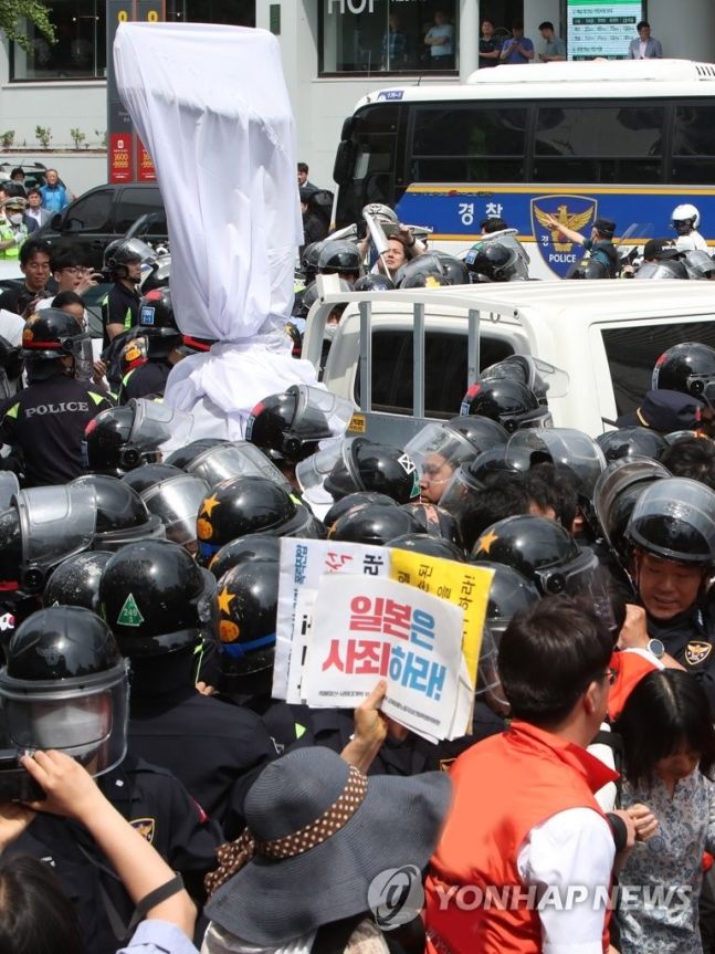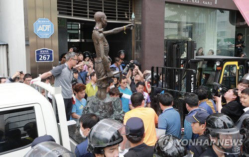日本がしっかりとした謝罪と補償をしない限り、労働者像は日本領事館前に置かれます。