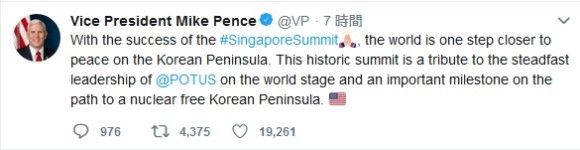 With the success of the #SingaporeSummit, the world is one step closer to peace on the Korean Peninsula. This historic summit is a tribute to the steadfast leadership of @POTUS on the world stage and an important milestone on the path to a nuclear free Korean Peninsula.