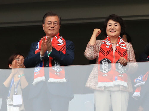 文大統領はベスト16進出の岐路に立つ韓国代表チームを応援するためロシア国賓訪問の最後の日程として予選観戦を選んだ。