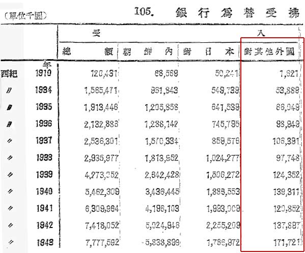 1910年から1943年まで、朝鮮の各銀行にある記録を見ると、海外から国内に送金されたお金をある程度把握することができる。