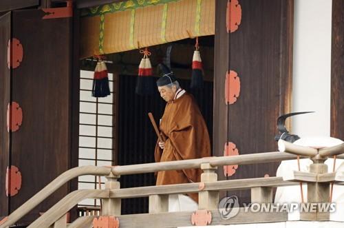 これに先立ち明仁日王は、この日午前、宮中三殿(順に参拝して氏神たちに日本固有語(大和言葉)で退位を告げる儀式)をした。
