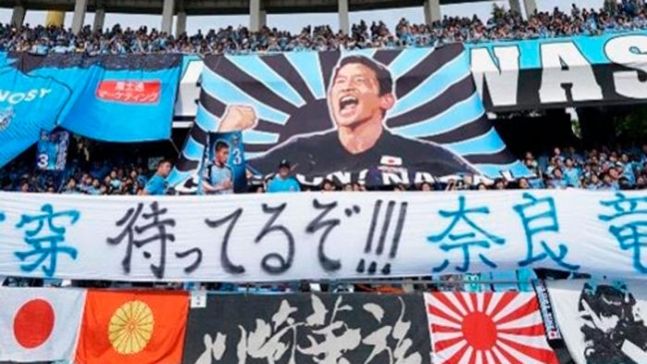 2017年のアジアサッカー連盟(AFC)リーグ戦の「旭日旗」応援でAFCから罰金1万5千ドルの懲戒を受けた川崎フロンターレのチーム競技の時、ファンがまた「旭日旗」を振ったのです。